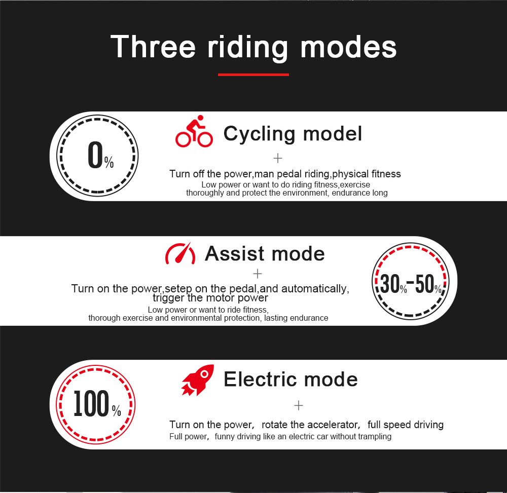 | Driving mode | Throttle and pedal assist |